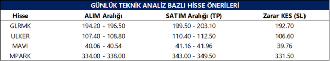 Günlük Teknik Analiz Bazlı Hisse Önerileri