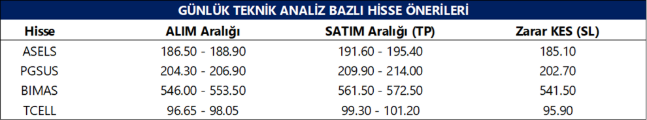 Günlük Teknik Analiz Bazlı Hisse Önerileri