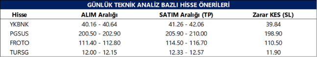 Günlük Teknik Analiz Bazlı Hisse Önerileri