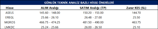Günlük Teknik Analiz Bazlı Hisse Önerileri