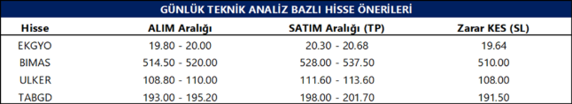 Günlük Teknik Analiz Bazlı Hisse Önerileri