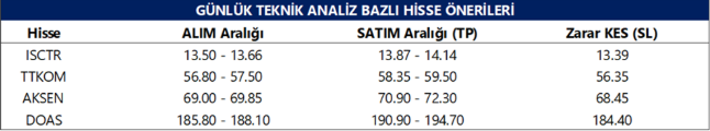 Günlük Teknik Analiz Bazlı Hisse Önerileri
