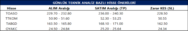 Günlük Teknik Analiz Bazlı Hisse Önerileri