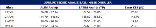 Günlük Teknik Analiz Bazlı Hisse Önerileri