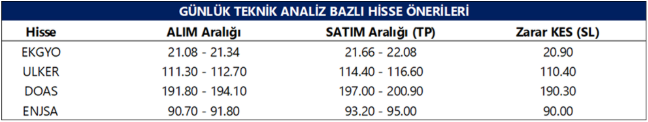 Günlük Teknik Analiz Bazlı Hisse Önerileri