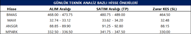 Günlük Teknik Analiz Bazlı Hisse Önerileri