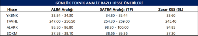 Günlük Teknik Analiz Bazlı Hisse Önerileri