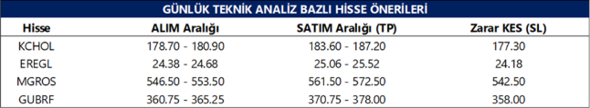 Günlük Teknik Analiz Bazlı Hisse Önerileri