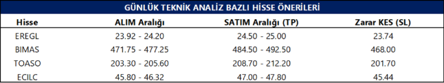 Günlük Teknik Analiz Bazlı Hisse Önerileri