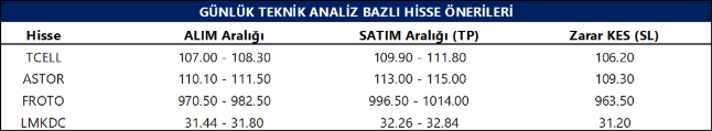 Günlük Teknik Analiz Bazlı Hisse Önerileri