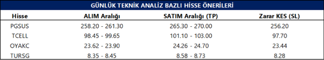 Günlük Teknik Analiz Bazlı Hisse Önerileri