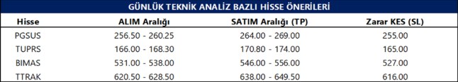 Günlük Teknik Analiz Bazlı Hisse Önerileri