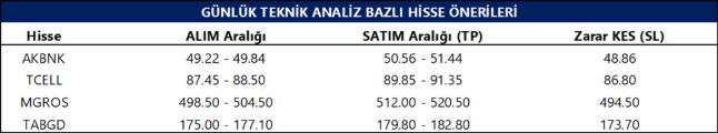 Günlük Teknik Analiz Bazlı Hisse Önerileri