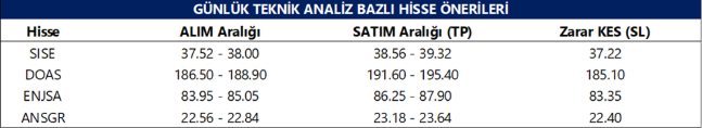 Günlük Teknik Analiz Bazlı Hisse Önerileri