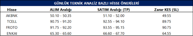 Günlük Teknik Analiz Bazlı Hisse Önerileri