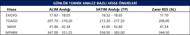 Günlük Teknik Analiz Bazlı Hisse Önerileri