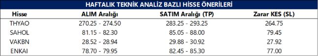 Haftalık Teknik Bazlı Hisse Önerileri
