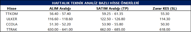 Haftalık Teknik Bazlı Hisse Önerileri