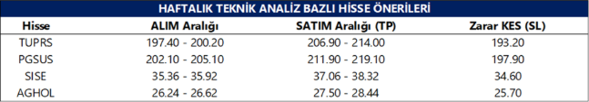 Kaynak: Tacirler Yatırım Haftalık Teknik Analiz Bülteni