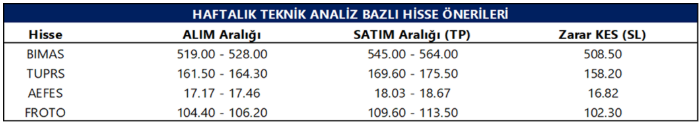 Kaynak: Tacirler Yatırım Haftalık Teknik Analiz Bülteni