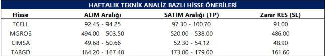Kaynak: Tacirler Yatırım Haftalık Teknik Analiz Bülteni