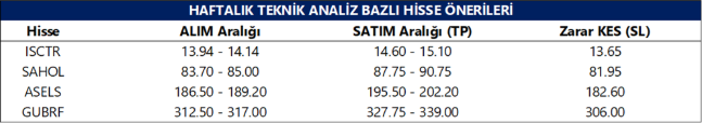 Kaynak: Tacirler Yatırım Haftalık Teknik Analiz Bülteni