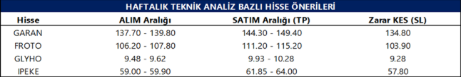 Kaynak: Tacirler Yatırım Haftalık Teknik Analiz Bülteni