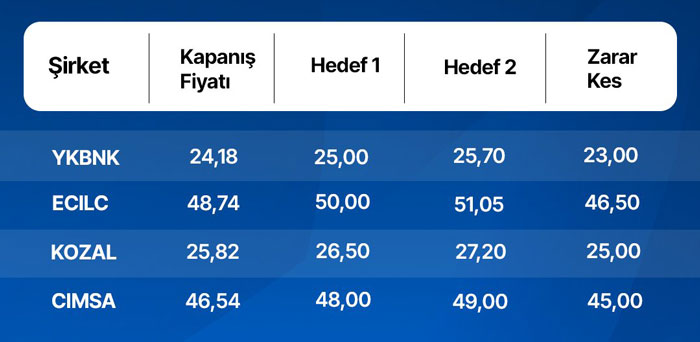 Bu hafta takibimizde olan 4 hisse önerisi aşağıda yer almaktadır:
