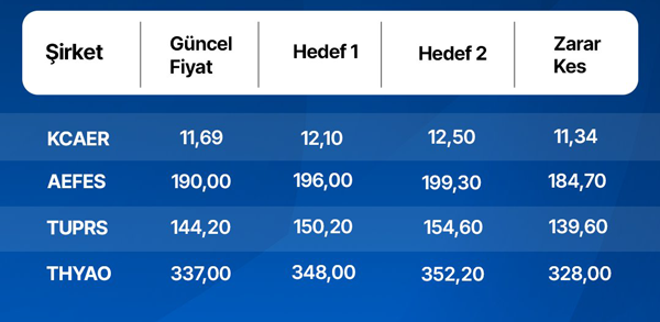 Bu hafta radarımızda KCAER, AEFES, TUPRS, ve THYAO var!