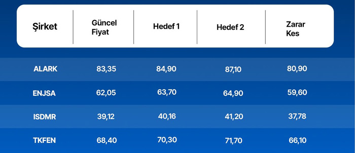 Bu hafta takibimizde olan 4 hisse önerisi aşağıda yer almaktadır: