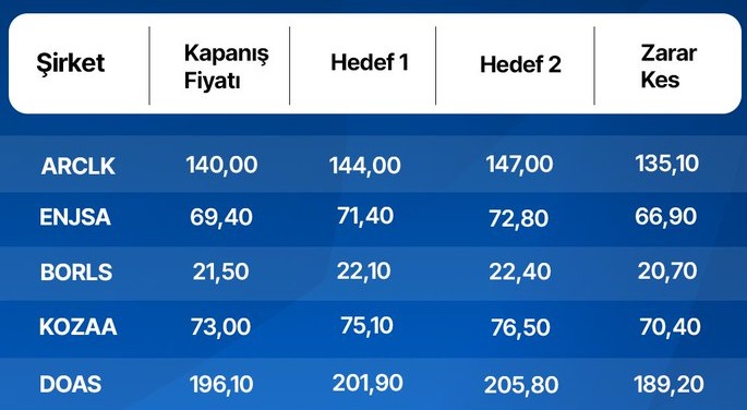 ARCLK ENJSA BORLS KOZAA DOAS