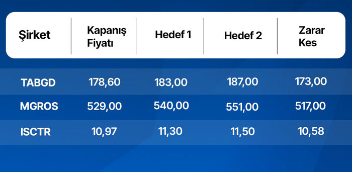 Bu hafta takibimizde olan 3 hisse önerisi aşağıda yer almaktadır: