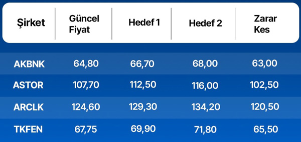 Bu hafta radarımızda #AKBNK, #ASTOR, #ARCLK ve #TKFEN var!