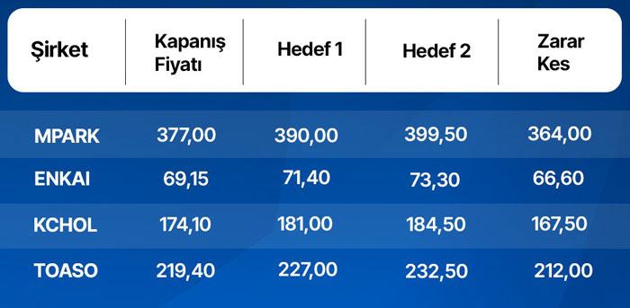 Bu hafta takibimizde olan 4 hisse önerisi aşağıda yer almaktadır: