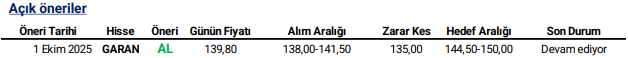 Günlük Hisse Önerileri