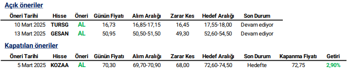 Günlük Hisse Önerileri