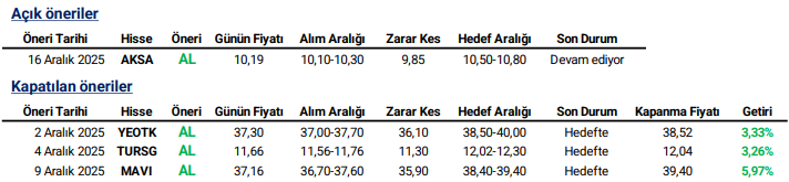 Günlük Hisse Önerileri
