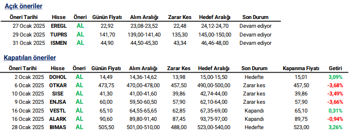 Endeks dün dalgalı bir seyirle birlikte kapanışını 10.082 seviyesinden gerçekleştirdi. Endeksin bugüne yatay başlamasını bekliyoruz. Endekste yükselişin sürmesi için 10.150 seviyesinin aşılması önemli olup, bu durumda 10.250-10.350 aralığı hedef olarak takip edilecektir. Olası gerilemelerde ise 10.000 seviyesi destek noktası olarak izlenmelidir.