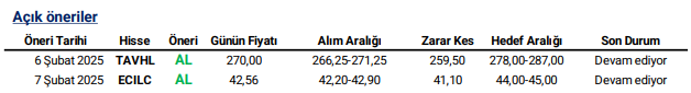Günlük Hisse Önerileri