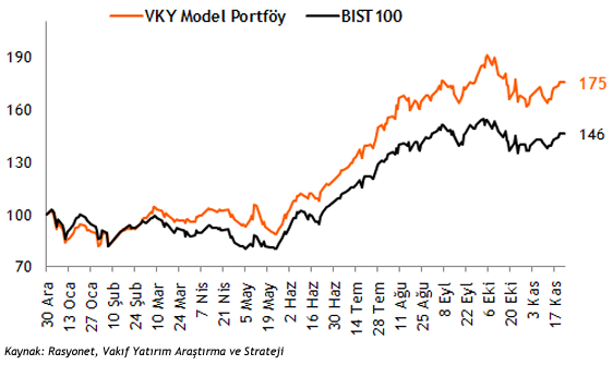 Borsa İstanbul yılbaşından bugüne %46 getiri performansı sergilerken, model portföyümüzün aynı dönemdeki getirisi %75 olarak gerçekleşti.