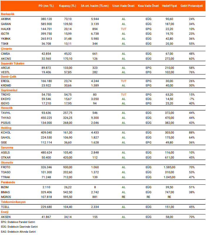 Endeksin bugüne hafif alıcılı başlamasını bekliyoruz. Endeksin 200 günlük hareketli ortalamanın üzerinde seyretmesi ve güçlü işlem hacmi, teknik görünüm açısından pozitif sinyaller veriyor. Endekste 10.200 seviyesinin aşılması durumunda, 10.400 seviyesini hedef olarak takip edilmelidir. Olası gerilemelerde ise 10.000-9.800 endeksin destek bölgesi olarak izlenebilir.