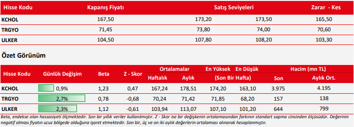 Kaynak: Ziraat Yatırım Günlük Teknik Bülten