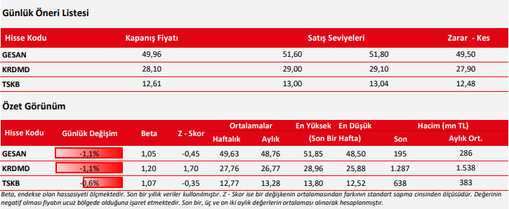 Kaynak: Ziraat Yatırım Günlük Teknik Bülten