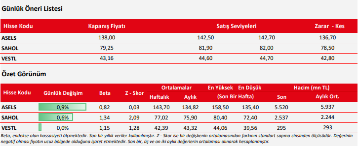 Kaynak: Ziraat Yatırım Günlük Teknik Bülten