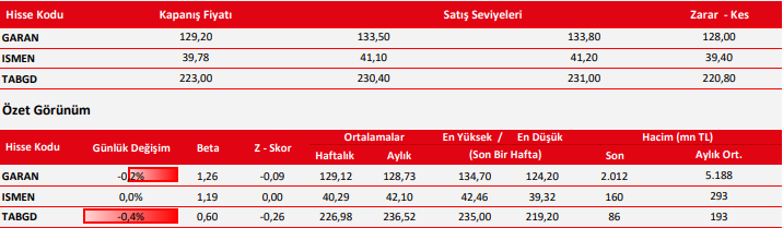 Kaynak: Ziraat Yatırım Günlük Teknik Bülten