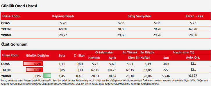 Kaynak: Ziraat Yatırım Günlük Teknik Bülten