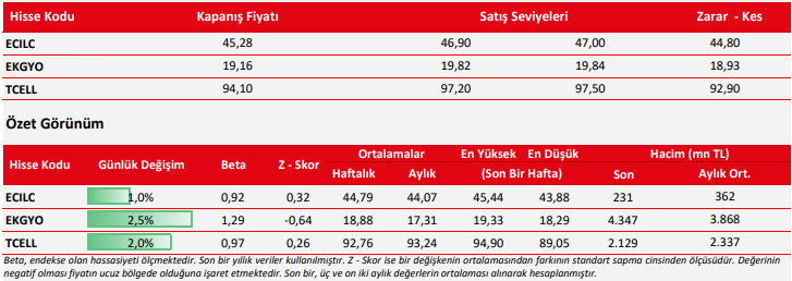 Kaynak: Ziraat Yatırım Günlük Teknik Bülten