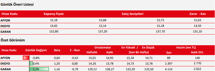 Kaynak: Ziraat Yatırım Günlük Teknik Bülten