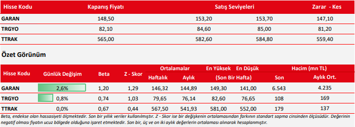 Kaynak: Ziraat Yatırım Günlük Teknik Bülten
