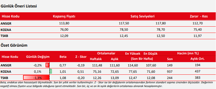 Kaynak: Ziraat Yatırım Günlük Teknik Bülten